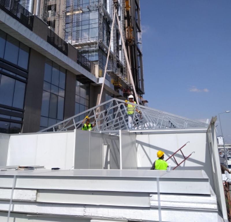 Suriye - Afrin - Cinderes Ankara'da bulunan 350 m2 iki katlı prefabrik yapı, Suriye'nin Afrin kent merkezine; Temel Yapımı, Nakliye, Demontaj, Montaj, olmak üzere anahtar teslim yapılmıştır.