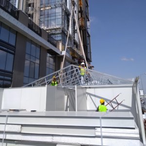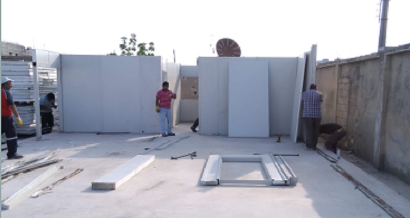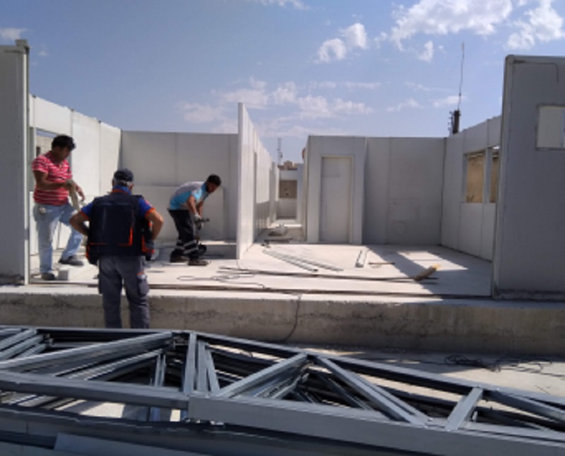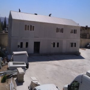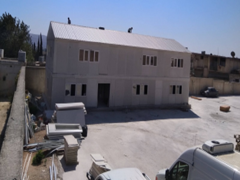 Suriye - Afrin - Cinderes Ankara'da bulunan 350 m2 iki katlı prefabrik yapı, Suriye'nin Afrin kent merkezine; Temel Yapımı, Nakliye, Demontaj, Montaj, olmak üzere anahtar teslim yapılmıştır.